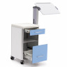 Опора для стояния используется как для обучения ребёнка положению стоя, так и для обучения ходьбе. Дополнительная функция ходьбы позволяет учить ребенка самостоятельно передвигаться в опоре для стояния. Предупреждает контрактуры в тазобедренных и коленных суставах, стопах, устраняет заваливания и переразгибания торса. Спинка снабжена регулируемым по высоте и ширине подголовником. Имеется регулируемый фиксатор на грудном уровне. Для устранения перекреста ног установлена съемная распорка. Предусмотрен регулируемый по высоте и ширине фиксатор тазобедренного пояса. Опора установлена на колеса, задняя пара которых имеет тормоза. Мягкие элементы на поролоне, обтянуты искусственной кожей.